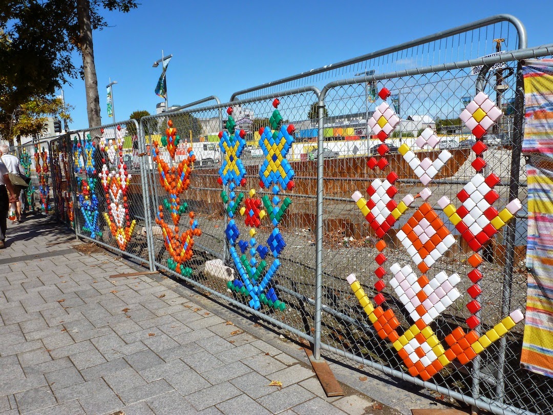 | Sali's birdbath being filled with lovely glass tiles.The birds are going to love this one. |
